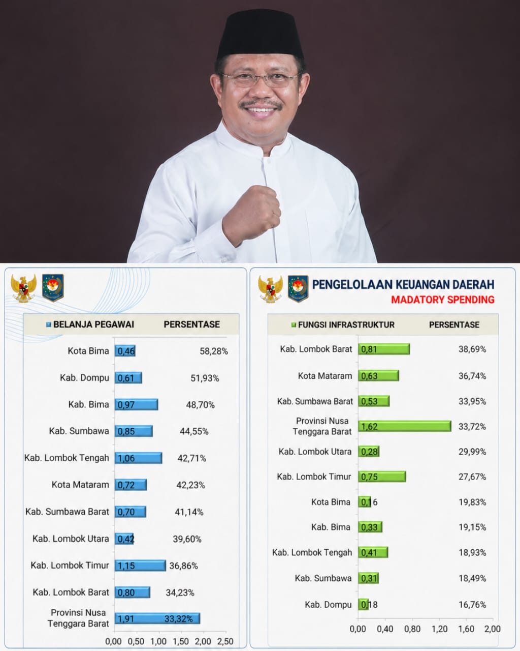 LOBAR CR – Kementerian Dalam Negeri RI merilis data belanja pegawai tahun anggaran 2026. Di NTB, Kabupaten Lombok Barat tercatat sebagai daerah dengan belanja pegawai terendah. Ini menunjukkan Lombok Barat sebagai daerah paling efisien pegawai. Sebab di data yang lain, Lombok Barat menjadi daerah dengan belanja infrastruktur tertinggi se- NTB.