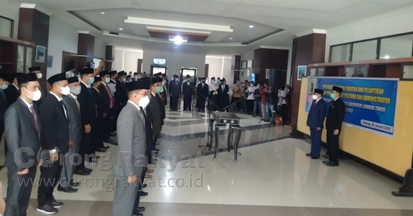LOMBOK TIMUR, Corongrakyat.co.id- Bupati Lombok Timur kembali melakukan perombakan (mutasi, red) jajaran pejabat eselon ll dan lll di lingkup Pemerintah Daerah Lombok Timur, dalam upacara pelantikan yang dilakukan oleh Wakil Bupati, H Rumaksi SJ, S.H itu, terdapat 14 pejabat tinggi pratama (eselon ll, red) yang diambil sumpahnya menduduki jabatan baru.