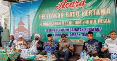 Menghadiri peletakan batu pertama Masjid Jami` Nurul Ihsan, Gerung Timur, desa Gerung Permai, Kecamatan Suralaga, Bupati Lombok Timur H.M. Sukiman Azmy mengaku bahagia.