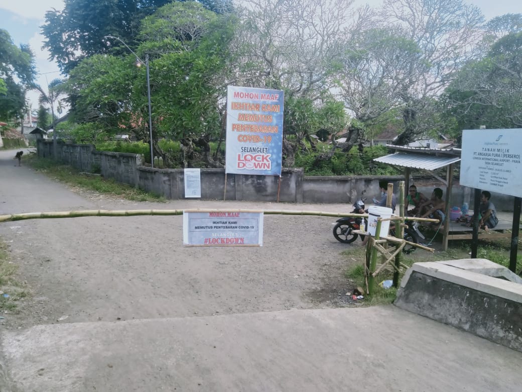 LOMBOK TENGAH, Corongrakyat.co.id- Dusun Selanglet Desa Penujak yang berada di lingkar Bandara Internasional Zainuddin Abdul Majid (BIZAM) ditutup akses keluar masuknya. Keputusan itu diambil setelah kepala dusun menemukan kata sepakat dengan tokoh masyarakat, tokoh agama dan tokoh pemuda setempat guna memutus rantai penyebaran pandemi Covid-19, terhitung sejak tanggal 28 Maret yang lalu.