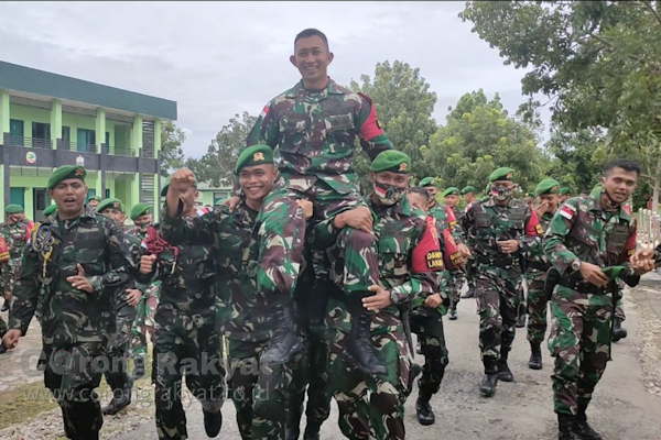 Ada yang menarik dari tradisi satuan Satgas Pamtas Yonif 742/SWY seusai menggelar upacara kenaikan pangkat satu tingkat dari pangkat semula yang dilaksanakan di lapangan Mako Satgas Pamtas RI-RDTL Sektor Timur.