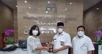 Secara langsung, Bupati Lombok Timur, Sukiman Azmy diadampingi Kepala Dinas DP3AKB menerima penghargaan sebagai KLA dari Kementrian PPPA pada, Senin (8/82022).