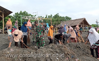Koramil 1615-08/Labuhan Haji bersama ratusan masyarakat menggelar karya bakti gotong royong pembersihan pesisir pantai di sepanjang pantai Labuhan Haji Kecamatan Labuhan Haji Kabupaten Lombok Timur, Rabu (6/1/2021).